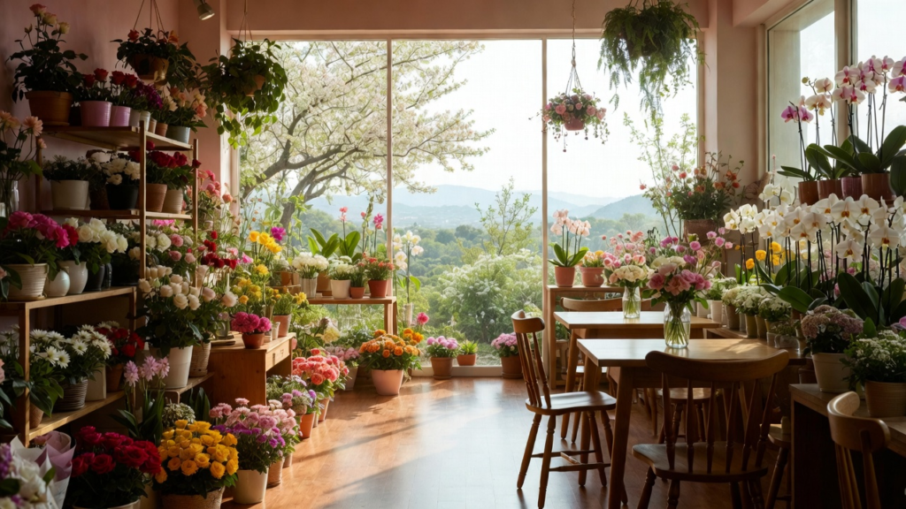 Flowers cafe is a happy place where the smell of flowers and coffee make you feel calm and bright. When you step into flowers cafe, you see pretty flowers everywhere—on tables, walls, and even hanging from the ceiling! It feels like walking into a soft garden with tasty treats and cozy chairs. Kids love looking at the colorful flowers, and parents enjoy the warm drinks. The music is soft, and the lights are gentle, making it a perfect place to relax. Flowers cafe is not just a cafe—it’s like a small wonderland where every little thing is made with love. Many people come here not only to eat or drink but also to feel happy and peaceful. It’s a great spot to take a break, smile more, and enjoy a little magic in your day.
